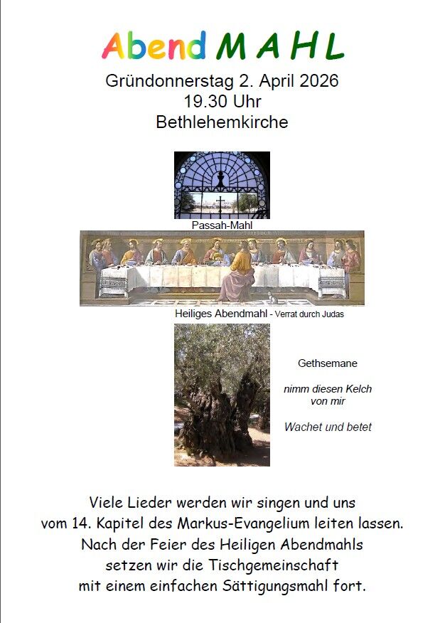 Bethlehemkirche: April, Juni, September, November